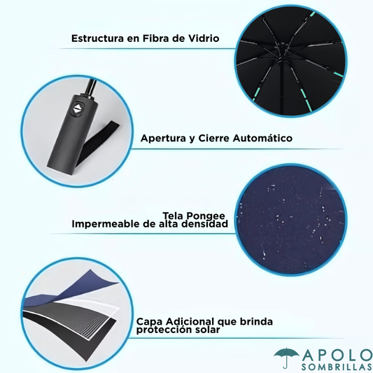 Sombrilla Grande Automática Tipo Golf Premium Apolo con Protección UV 30"- N04